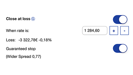 Adding a Guaranteed Stop order to your trading position puts an absolute limit on your potential loss. Even if the price of the instrument moves significantly against you, your position will automatically be closed at the specified price, with no risk of Slippage.